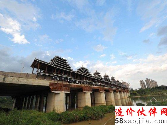 9月24日,于广西南宁市可利江大桥桥身上加建具有桂北传统木构风格的风雨桥廊建筑——相思·风雨桥。相思·风雨桥在设计上采取了新建风雨桥与原桥基本脱离,即在原桥两侧另设临帖的风雨桥结构体系,以保证超大型风雨桥廊及原可利大桥的结构安全且不影响原桥面的交通设计通行能力。采用全木构梁柱构架、木栏杆、木地板及瓦屋面,每侧桥廊设有9座塔楼,工程总投资为4884万元。风雨桥是贵州、广西、湖南、湖北等地独具特色的侗族建筑,由桥、塔、亭组成。被称为世界十大最不可思议桥梁之一。因行人过往能避风雨而得名。