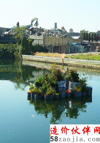 纽约布鲁克林的郭瓦纳斯运河是美国受污染最严重的水道之一。这个约3千米(1.8英里)长、30米(100英尺)宽的运河以前是许多工厂的所在地,遭受了严重的钢铁、杀虫剂和污水污染。虽然在努力清理运河周边的工厂区,但纽约景观和城市设计公司Balmori Associates开发了一个新的实验性项目,使用一个漂浮的景观净化运河的河水。上周将它建在Gowanus Whole Foods后面,临近第3街大桥,最后会移到第7街盆地附近的最终区域。