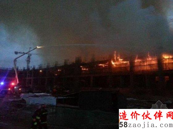 轨道交通1号线一期工程东岗车辆基地项目运用库东南侧小二层在建工程现场发生火灾事故,初步分析着火原因为:电焊火花引起混凝土养护用棉毡着火,进而引起支撑方木着火。