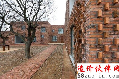 第二个探索从2006年开始,诗人住宅。我们去项目场地的路上看到当地还在大量使用,因此决定使用红砖作为主要建材。在我们的项目中,红砖建筑的表面肌理与周围建筑还是有些不同,表面的开洞主要是向内倾斜,向外开洞,使建筑表面具有某种形态暗示,能够表达建筑立面背后的形态逻辑。