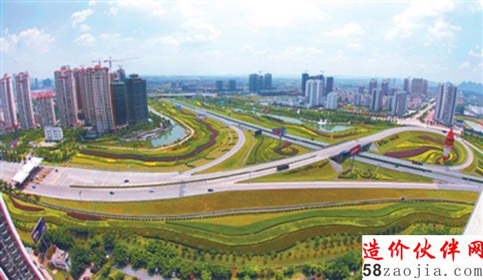 高楼、绿地、水城、公路和谐共存,成为城市一景 黄光荧 摄