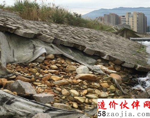 宁德市金马防洪防潮工程有限公司游姓总工程师告诉记者,整个防洪堤断面都是设计为浆砌式护坡,没有使用混凝土,时间一久,就很容易老化,被雨水冲刷掉,如果堤坝护坡被冲出一个小口,就会连带着掀起来一整片。