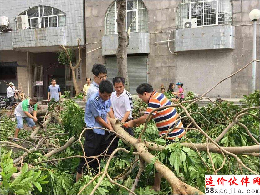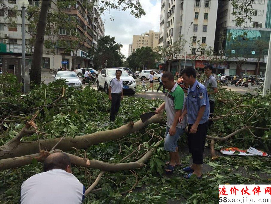 今年第22号台风"彩虹"于4日下午2点10分前后以强台风级在我市坡头区沿海登陆,是1949年以来十月登陆最强的台风。“彩虹”正面袭击市区,大量路树被连根拔起、广告招牌被吹翻,大街小巷树干、树枝、树叶和杂物堆积,为尽快恢复市容市貌,市房管局迅速行动,取消国庆休假组织全体干部职工及时开展救灾复产活动,从4号开始,连日对路边倒树进行清理,搬运路障及时恢复道路畅通,对办公区域、周边环境及卫生责任街道进行卫生大扫除。