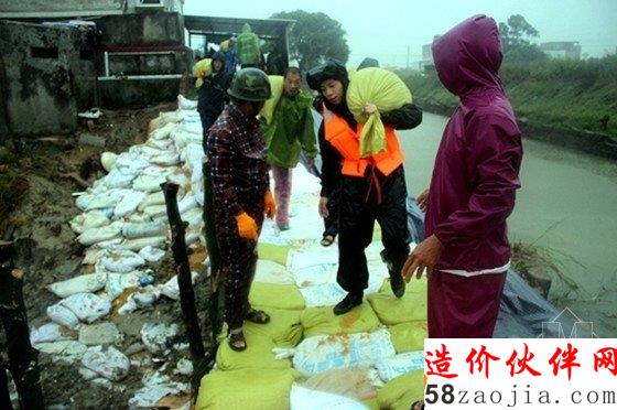 当地镇村干部和驻地六鳌边防派出所官兵闻讯赶往现场进行抢险救灾。抢险人员从150米外的沙场装沙袋、扛沙袋进行填堵,并调来铲车进行加固。