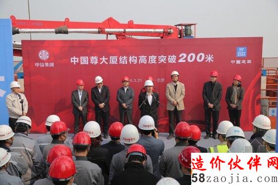 自地上工程开工以来,中国尊项目克服了场地狭小、交通拥堵、阅兵停工、雾霾停工等重重困难,完成了世界房建施工领域面积最大、承载能力最高、与大型塔机一体化结合的智能顶升钢平台安装及顶升作业,并于2015年9月结构高度突破100米。