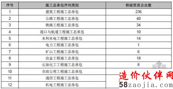 截至本次资质名单的核准,全国共有特级资质企业348家,特级资质382项。12个总承包专业中,特级资质企业分布如下: