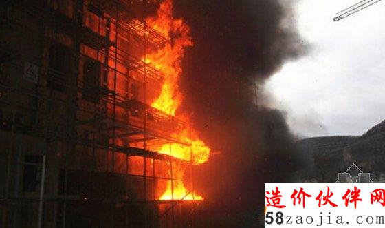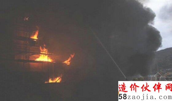 现场火光冲天,浓烟滚滚,火势正处于猛烈燃烧阶段,经现场勘察发现起火物质为楼房四周手脚架上的木板、保温板等,如不立即处置,很可能蔓延到整栋楼以及周边堆放的建筑材料,造成严重损失。消防中队指挥员立即下令设立水枪阵地,两台车各出一支水枪从大楼两侧对火势进行夹击,防止火势蔓延,同时设立警戒疏散周边群众,防止无关人员进入火场造成不必要的损失。