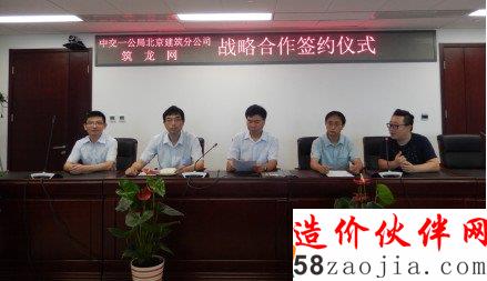 2016年6月16日,中交一公局北京建筑分公司与筑龙网战略合作签约仪式在京举办。中交一公局北京建筑分公司书记赵会安、总工曾文、技术部长门贤君与筑龙网教育负责人宋锟、施工讲师张方共同出席。