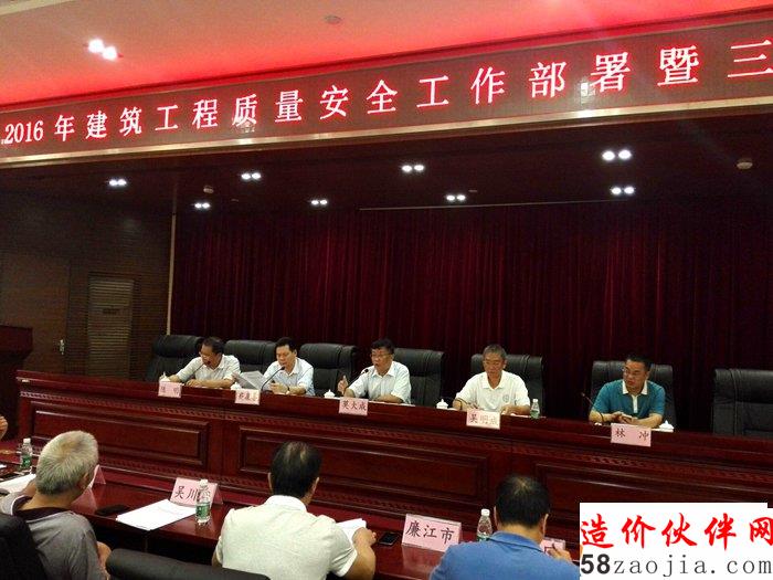 4月15日上午,湛江市住房和城乡建设局召开2016年建筑工程质量安全工作部署暨三防工作会议,并对全市建设工地开展防范恶劣天气引发生产安全事故专项行动检查进行布置。副局长莫大成出席会议,并对有关工作作了具体指示。
