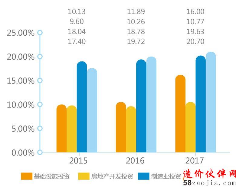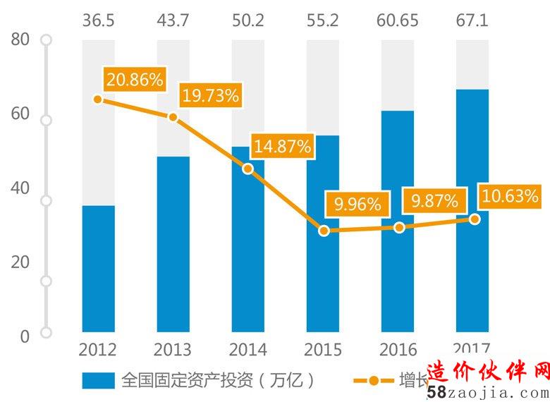 经历了2013~2015年的增速断崖式下跌,2016年全国固定资产投资增速小幅上涨,2017年继续稳定上涨态势。