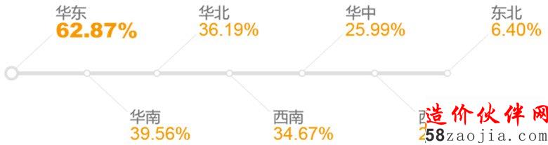 全国各区域询价活跃量前三甲分别为:华东占比30.31%,西南占比18.6%,华北占比16.86%。