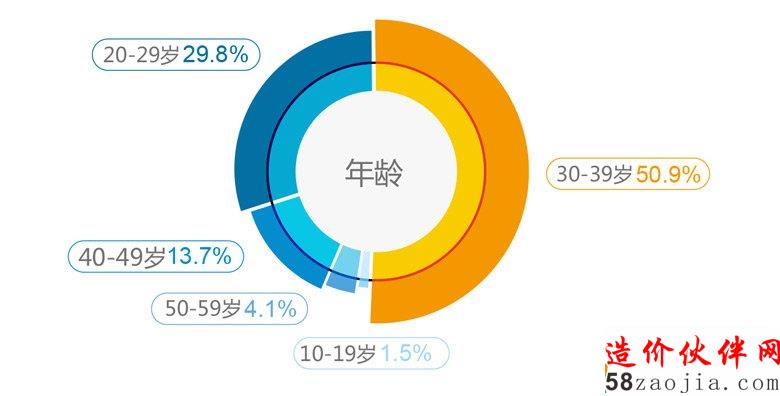 80%以上的建设行业从业人员年龄在20-39岁之间,40-49岁占比为13.7%,50-59岁占比仅为4.1%。对于建设行业来讲,需要大量精力和时间的投入,是工作的黄金时期。40岁以上这部分人基本已处于管理岗位。