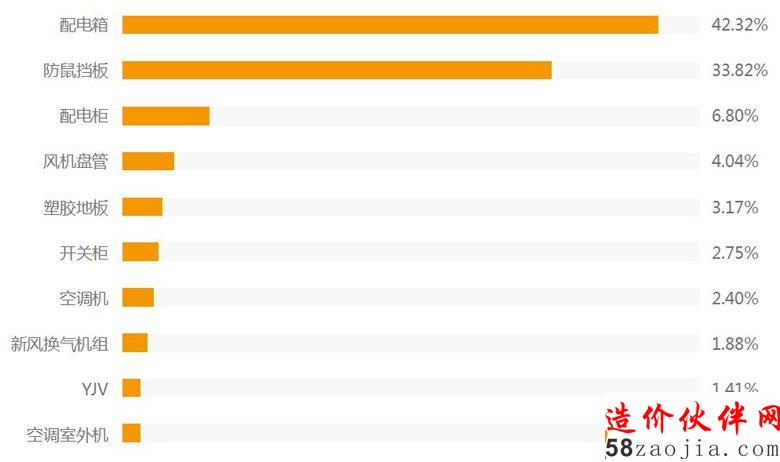 热询材料TOP10中,95%以上询价为非标类材料,其中配电箱和防鼠挡板占76.14%。