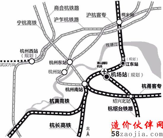 形成杭州站、杭州东站、杭州西站、杭州南站、机场站和江东站6个客运站,通往上海、南京、合肥商丘、武汉、南昌长沙昆明、温州深圳、台州、宁波8个方向,沪杭、沪乍杭、宁杭、商合杭、杭黄、杭温、杭长、杭甬、杭绍台等9条高铁线路和沪昆、宣杭、浙赣等3条干线铁路引入的大型放射型枢纽。