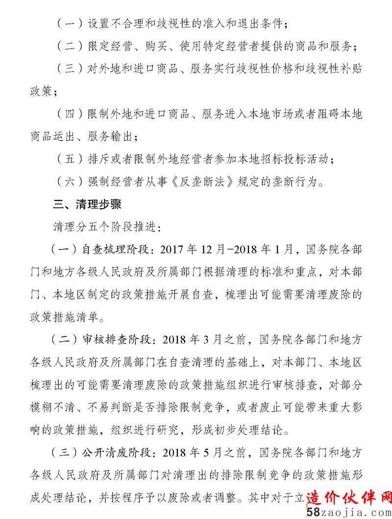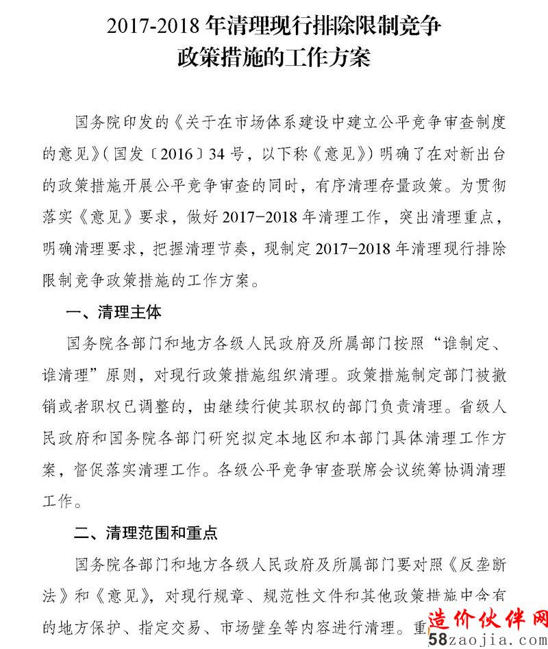 关于印发《2017-2018年清理现行排除限制竞争政策措施的工作方案》的通知