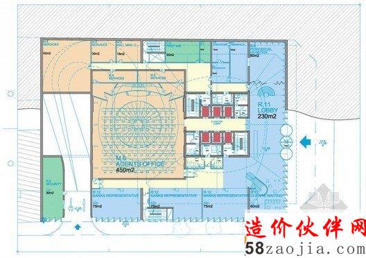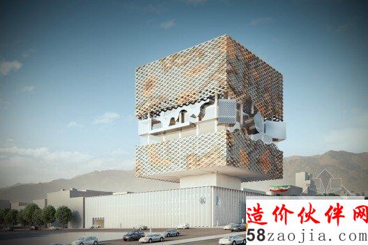 这是由汉斯•霍莱因及合伙人参与设计的德黑兰证券交易所竞赛设计方案,这个项目的目的不仅是打造一个地标性的建筑,容纳证券交易等功能,同时呈现出极高的整体性,设计使其成为地标性结构,定义城市肌理。矩形的办公塔楼形式跟随着场地形成,创意性表皮将两种不同的建筑表皮(玻璃墙和瓷砖墙)结合在一起,形成强烈的反差。项目所在场地位于德黑兰北侧,这是一个精心挑选的位置,城市的直角结构决定了建筑要尊重它严格的界限。设计师通过最大限度地利用线性的场地解决了在城市界限限制下打造地标性建筑的这一矛盾现实。最终设计呈现出一个简单的布局,一个方盒子里套着一个立于长方柱之上的核心体。这种简单性尊重了城市的既有肌理,但是设计师通过将方盒子抬高,形成一种独特的纪念性的地标形式;同时加上精致的细节设计,例如表皮设计,设计仍旧深深扎根于德黑兰的建筑传统。