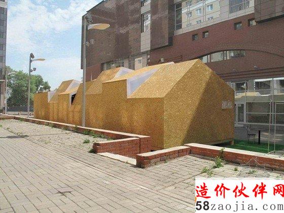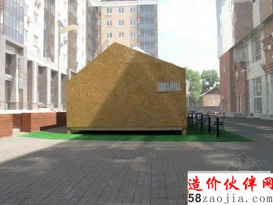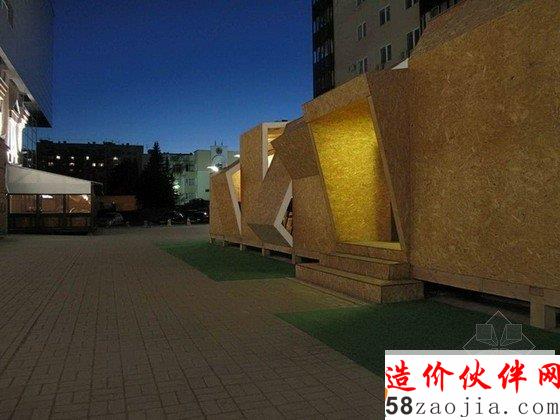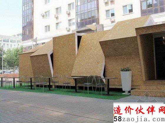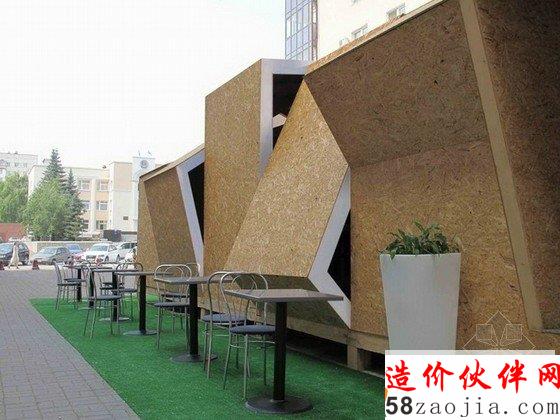 这是由DarkDesignGroup设计的一个夏天临时露天咖啡馆,项目预算非常紧张,设计师决定墙壁和屋顶板使用基本材料,以便秋天不使用时更容易被拆除。通过在木架上创造性地使用定向刨花板,他们能够创造一个充满活力的形式,邀请公众进入内部,同时享受户外的气氛。通过操纵木框,他们采取不同的方式来创建开口,从而形成了一个令人兴奋的建筑片。