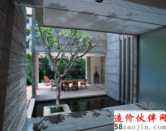 这是由新加坡事务所WOW architects设计的一个住宅项目,住宅位于一个小小的热带场地之中,有限的空间使设计师不得不最大限度地利用每一点空间,以实现一个实用性和美感之间互相平衡的住宅。客户对于住宅的要求,完全融入景观,使建筑师创造了一个正式的结构,它向着外界完全敞开,框定视野,同时使气候等因素能够对室内产生影响。花园被涵盖在住宅的每层空间之中,水景定义了整个住宅的氛围。