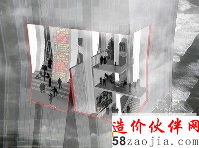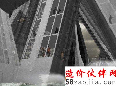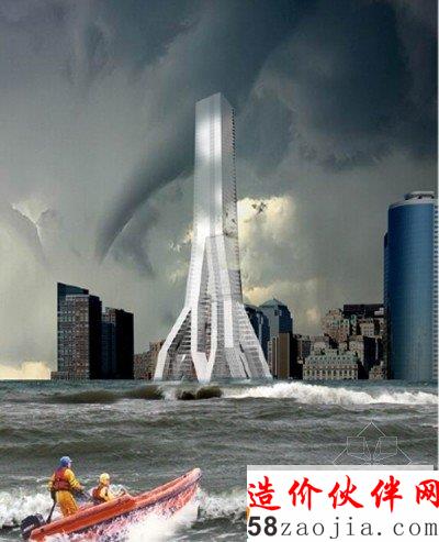 这是由HWKN Architects事务所设计的一个概念性作品,名为天空森林摩天楼,这是一个高层的塔楼,设计幻想着把它放入到一个海洋环境的世界中。它一方面是环保的基础设施,一方面是垂直的办公塔楼,项目能够在不可预知的未来发挥积极的作用。每层都是自给自足的,能够在灾害中做到独立救援。楼层之间由一个分区的基础设施表皮连接,这个表层可以处理各种不同的服务,从垂直流通,到水、能源、空气供给等。