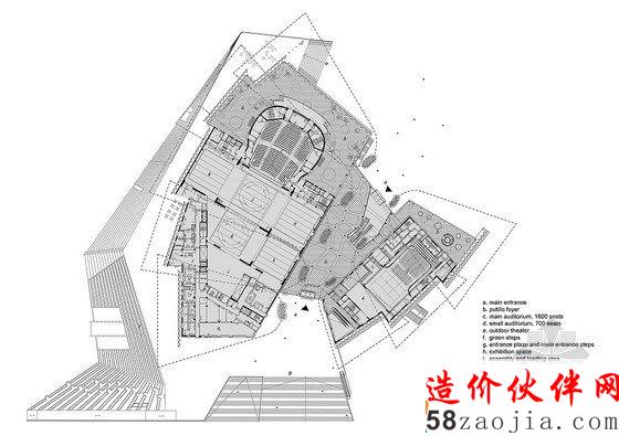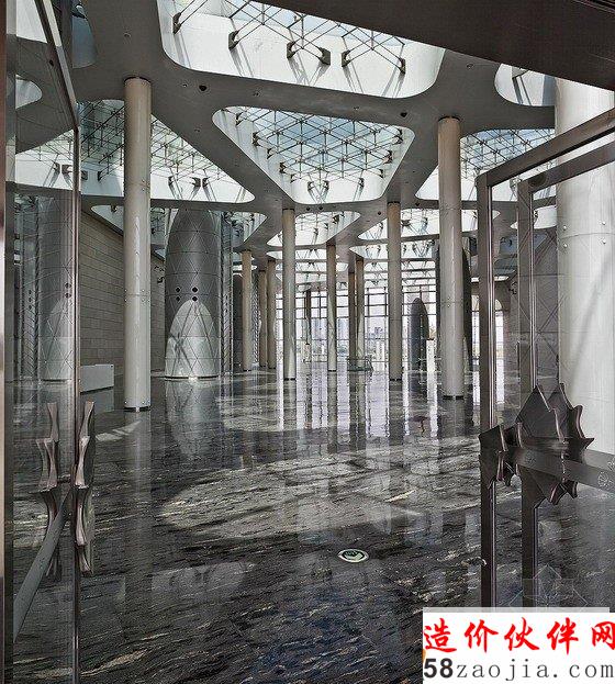 这是由PES Architects事务所设计的无锡大剧院项目,设计糅合中式的象征主义和芬兰式的冰川特征,最终形成一种宏伟感和和谐感。主要的设计概念基于项目所在地,人工的岛屿和附近的高架桥使这个地段堪比悉尼歌剧院所在地。鉴于此,设计旨在打造地标性的特色,建筑高达50米,如同一个从台阶基底之上崛起的巨大的雕塑。它的顶部漂浮着八个巨大的屋顶翼结构,它们向外伸展,罩住建筑表皮,为建筑定义飞翔的翅膀的感觉,同时保护建筑免受阳光直射。建筑概念极其独特,钢铁翼的内部是上千个LED灯,它们会使“翅膀”根据上演剧目的变化而发生颜色的变化。这个设计得益于翼下面的穿孔铝板。另一个特别之处是一片如森林般的50个光柱,每个九米高,它们从主要入口广场开始生长,支撑着中央大厅的屋顶,继而延续到室外的湖边入口处。设计表现出强烈的中国元素,包括巨大尺度的竹子材料的使用。设计还包含带有芬兰特点的材料:湖边大厅里的礼堂的弧面墙壁由几乎两万个特殊设计的玻璃砖块覆盖。芬兰特点中的湖水和冰是设计灵感的来源。