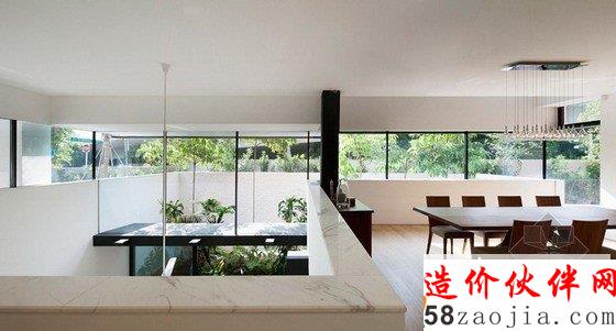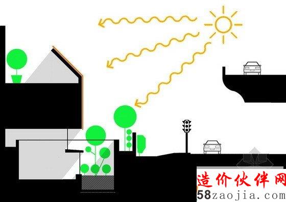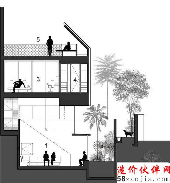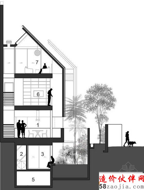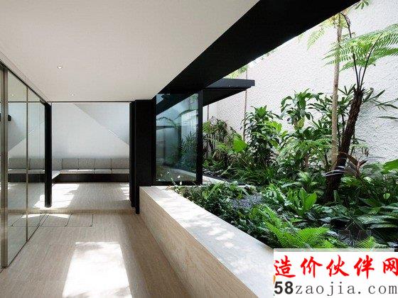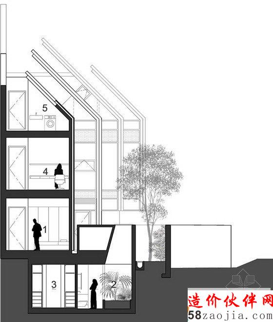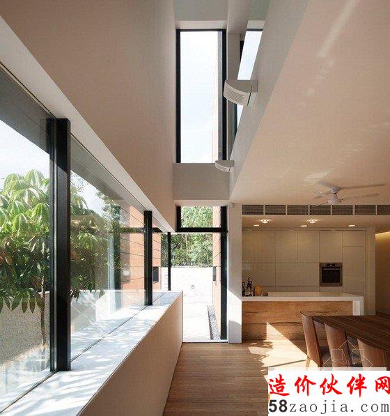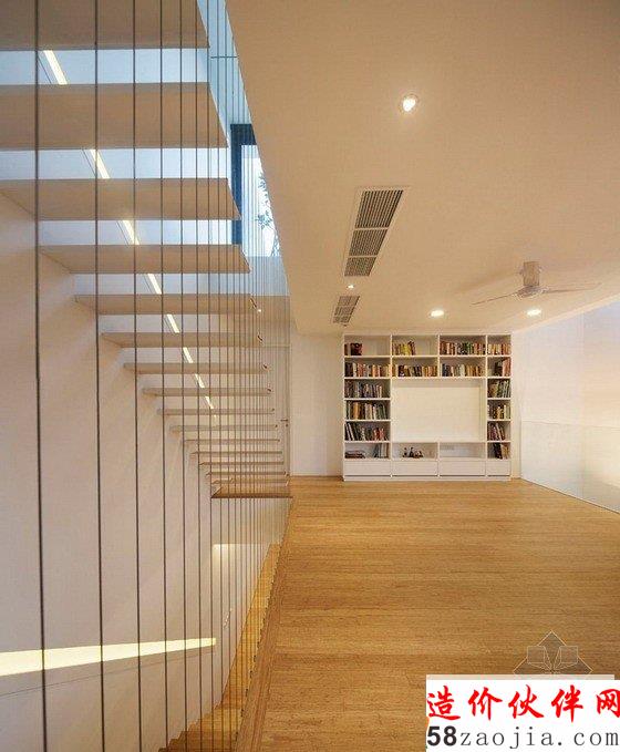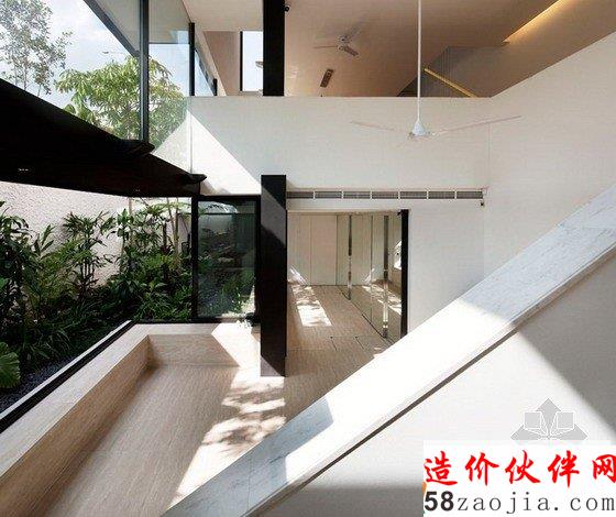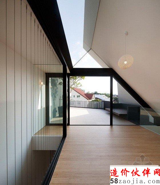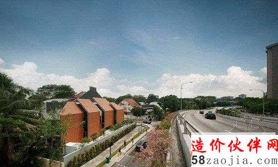 新加坡建筑事务所formwerkz architects最近完成了“armadillo住宅”,并入围2012年世界建筑节“住宅”单元。针对基地的两个现状环境条件:旁边高速公路的噪音污染和大面积朝西立面带来的西晒,建筑师的解决方法是,设计了四个台阶式的面板,对外封闭,在隔音防西晒的同时,在侧面设置了通高玻璃,垂直的户形态保证了空间的私密性。在台阶式外壳后面,建筑师还设计了一个下沉式庭院,与主要的起居室相连。悬挑出去的上层空间和重叠的外挂部分引入了间接自然光。安装在顶楼的机械风扇创造了一个烟囱效应,让底部的冷空气上升,进入到顶层的卧室中。