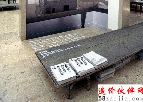 第一个原则是最重要的,减少废物,其次是最直接的再利用可能的最小使用机械系统,最后转化成可重用的物质的材料。展馆体现在其介绍的这些想法,保持最小的内部。游客进入侧门,行走自如通过,否则有序的空间,而简单的平台,提出在不同的水平创造一个充满活力的空间,用最少的干预。人行道,地板和墙壁的其他用途的标签,通知显示的大幅面由埃里卡overmeer的照片,再利用作为一个直接的例子。