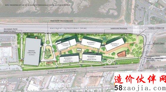 公园的空间氛围,屋顶将覆盖一层草皮,上面种植各种当地树木,而且人们可以自由的到屋顶上散步、休闲。新设计的西区将通过一条通道与现在的东区总部相连,这条路径专为骑自行车的人设计,步行者将从bay-front高速公路下面穿过。