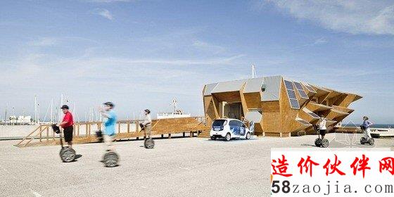 这是由加泰罗尼亚高级建筑学院(Institute for Advanced Architecture of Catalonia)设计的恩德萨公司展馆项目,以作为在巴塞罗那举办的智能城市博览会的一部分。结构通过多个太阳能板的运用,实现建筑的智能化。项目旨在定义一种可适应性的建造系统,它能以最低的能源消耗回应各种需求。通过这种设计,每个单独的模块能够满足自身结构,能源及环境的需求。建筑的表皮形成一种智能节点组成的网络系统,它好似一种太阳能砖块,阻挡过强的太阳辐射,但是收集和储藏适合的能量。