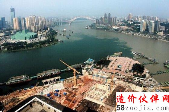 | 位于渝中区朝天门广场旁的重庆来福士广场有个形象的名字—“朝天扬帆”,它是新加坡在华最大投资项目,凯德集团投资超过240亿,总建筑面积超过110万平方米。8幢塔楼建成后,将成为重庆新地标。