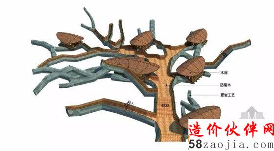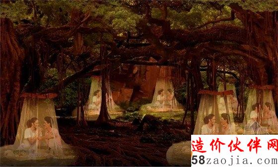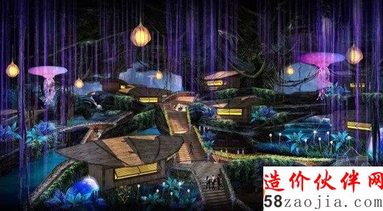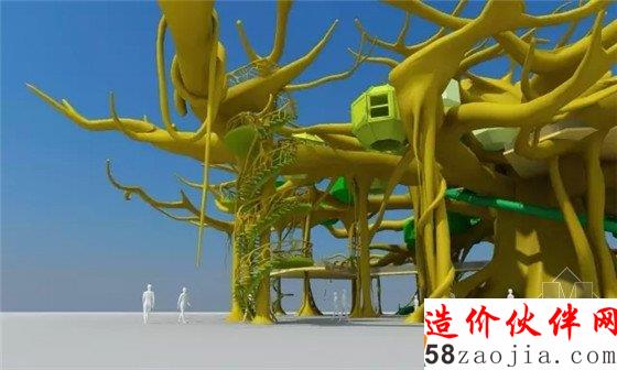 树屋,英文TreeHouse,是指与树有关的屋型建筑。树字,可以理解为建在树上,或具有树的外观形态,或在一定高度上悬空建造。西方很多人小时候都会在在家旁边的大树上建一个小木屋,它玲珑小巧,却能容纳一个人所有的童年幻想,隐居于山野,栖息于树上,听风吼雨嘶鸟鸣……由此,衍生出如今很多的树屋酒店,一床,一窗,一桌,一茶,独享仙人的乐趣,已不是难事。但是你见过240人同时在一棵大树上各自拥有一个独立树屋的壮观景象吗?近期,由国内生态造园的先锋——夏岩设计的概念落地产品“一棵树”仿生部落创意空间,就将树屋概念无限放大,用一棵树将吃、住、行、娱、购等多功能空间有机整合,打造成一个炫目的现实版阿凡达场景。 在我们的民间传说中,屡有“老树成精”的邪魅桥段。而电影阿凡达中则直接将树赋予了“生命之灵”的寓意,这并非科幻世界的浪漫臆想。从生物进化史来讲,树木的确可以称得上人类的“祖先”。如今的很多环保行为,都以保护树木森林作为对生态系统的终极关怀,或者以树木的符号作为标识,——我们已然从心底认同:渺小的人类,不过是被树木那博大胸怀庇护和滋养着的子民。 国内生态造园的探索者夏岩集团近期就做了这样一个颠覆式的生态景观创意落地作品:“一棵树仿生创意空间”,将他们对树近乎偏执的膜拜情结,植入到景观设计中,打造了一个异型树状景观综合体。