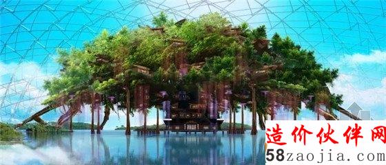 称之为创意落地产品,而非“先锋概念产品”,这是基于夏岩二十年设计施工一体化的实践经验,它将确保该项目在设计之初,就已考虑了落地成型的需求,使其具有高度创意性的同时,兼具高度可操作性。目前已在云南、湖南、新疆、内蒙等地展开项目落地合作。下面分别分享以“一棵树”概念为蓝本展开的实际运用案例。 1.“一棵树”水上木屋集群 甲方计划兴建一座占地七万平米的气模结构水上乐园。夏岩根据委托方的要求,为他们设计了一个综合世界最大膜结构、国内最大室内木船、国内最大海啸池、国内室内最大的人造海洋、世界最大水上木屋集群的整体方案,在7万平的限定范围内,最大限度保留戏水空间,将商区、住宿等功能空间集中于水上一棵树。