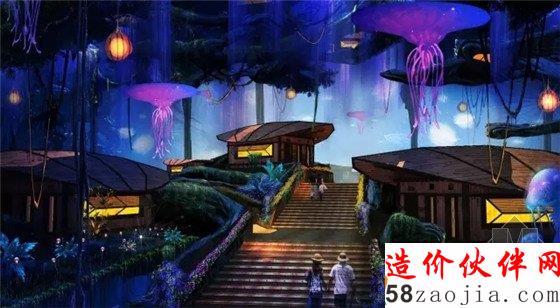 为了实现更稳固的结构,同时由树上垂下的若干雨林根系亦可为树冠及树上木屋提供承托力,此外,这些辅助支撑结构还可以由狭长的石峰作为替代品,呈现更为丰富的视觉层次,从而构建一个现实版的阿凡达世界。白天为海面带来更多的凉爽气息,夜晚结合亮化形成真实版阿凡达式的如梦如幻的场景。