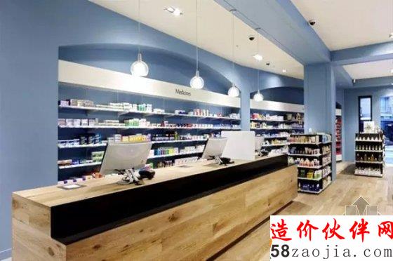 这些药房简直美得不像话 买个药还能顺便约个会灰蓝色的基调配以整齐的货架展示,给顾客展现一个清新舒适的购物空间。药品展示区的设计也透露着小心机,医药的十字标志型的展示货架让顾客一目了然,既能发挥规划功能区的作用,还能增加美观。药店中央区域设计了一个多边形的导购台,让空间环境更显紧凑,有条理,同时方便顾客咨询。 淡雅蓝与木元素的