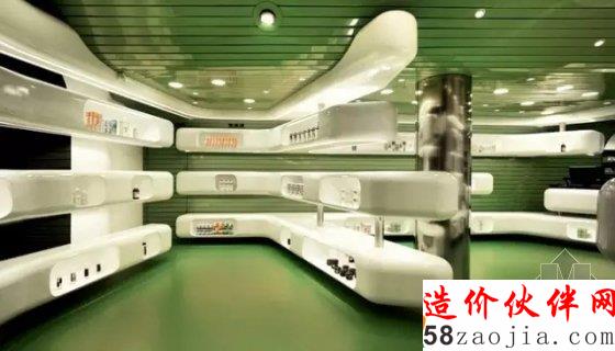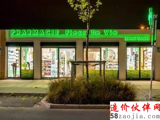这些药房简直美得不像话 买个药还能顺便约个会这个药店设计第一眼真的给人感觉很科幻有木有,霸气的店标设计更是分分钟引爆路人好奇心。室内的3D货架与3D式的外墙共同构成这个森林般奇幻的空间。天花板与地面都采用绿色,而货架则采用白色,看起来仿佛漂浮在这个空间内,引人入胜。
