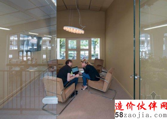 如果给你一个大仓库做办公室 你会装修成什么样而在其对面,高饱和度色泽的多彩会议室明亮耀眼,用色彩划分主题,既有提供巨大白板墙的会议室,又有承办多人会议的深蓝色空间,还有适合私密性交谈的小型会议室,以及大地色调的阅读室等等。