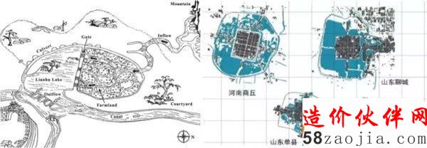 图2 左:完整的乡土陂塘结构 右:黄泛平原的古城对洪涝的适应性结构