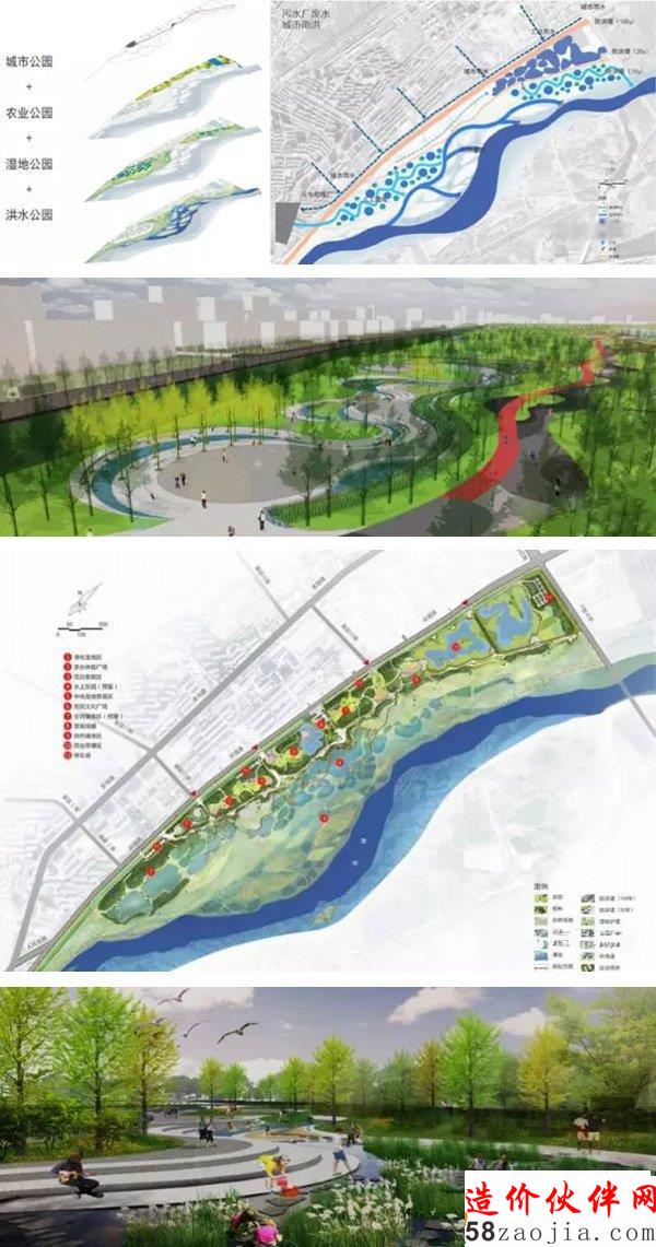 图6 纽约高线公园:公私合营带动城市生活 这种政府、社区居民、社会组织或企业的新型模式为绿色基础设施的社区参与、建设运营、投融资方面提供了一个新视野。它首先解决运营与持续收益问题,通过特许经营的活动、项目实现经济获益;其次,解决社会参与问题,通过更多活动拉近社区居民与绿色基础设施的距离,互动参与性更强;第三,政府财政与管理成本更低,只需按期购买服务。 对于我国来讲这是一个很值得探索的方向,我国正在推行的公私合营(PPP)模式,但仅当做一种投融资方式,并未将社会参与、资本运作、可持续经营相统筹。在都市农业公园、亲子乐园等很多细分产业中,这种模式都很有探索与实践意义。 Q6: 可否分享一下您在建设绿色基础设施方面的实践经验? 栾博: “科学地设计人居环境,艺术地解决生态问题”是我们与战略伙伴一方设计在研究实践结合的过程中的共同秉承的宗旨。至今,我们已经完成了包括陕西咸阳、贵州六盘水、福建东山、浙江温岭等一系列案例,目前均在建设中。 以咸阳渭河海绵湿地的实践为例介绍一下我们的工作。渭河是咸阳、西安的母亲河,自古以来,她就是对关中大地至关重要的生态基础。快速城镇化使渭河在城市段面貌大变,失去了原有的生态服务功能。我们在咸阳境内的渭河缓冲带上将洪水适应、雨水调蓄、废水资源化三者统筹,拓展了城市海绵的内涵与价值。并把水净化过程与市民科普体验结合,再生水用于绿地植物、市民菜园的灌溉水源。形成了以水为核心,集洪泛河滩、湿地海绵、城市公园三位一体,具有洪水适应、雨洪调蓄、废水净化、休闲健身、自然体验、文化生活等复合功能的绿色基础设施。在工作过程中,我们将环境工程、生态技术、水利工程、景观设计多专业紧密合作,现场监测、分析研究、设计实施的过程联动,保证绿色基础设施的综合价值与多元目标得以实现。这个案例预计今年可以建成。