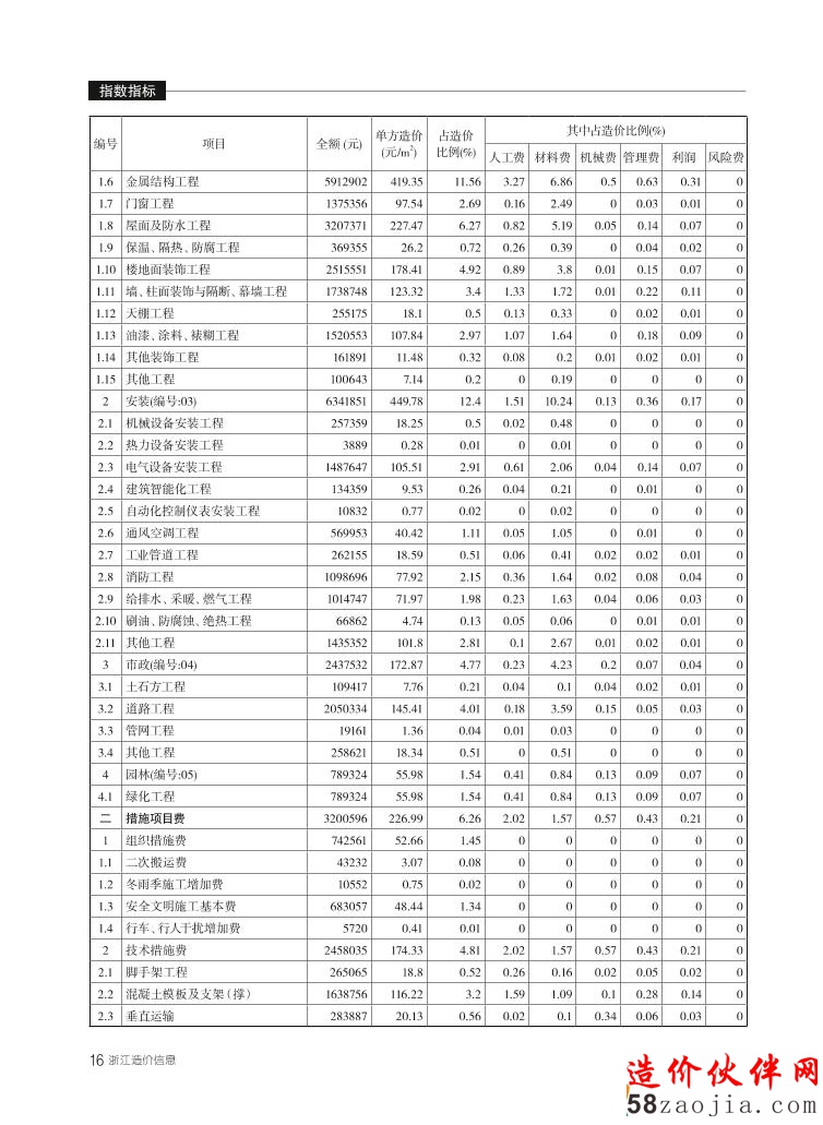 浙江省某学校建筑安装工程(指标)