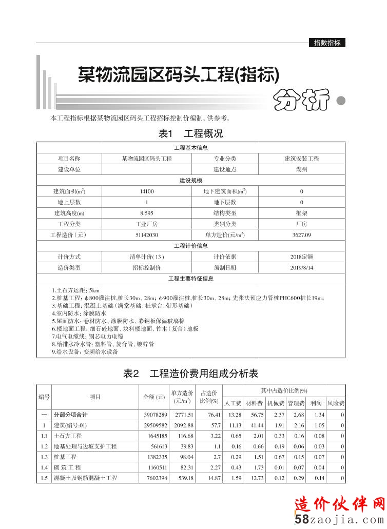 浙江省某物流园区码头工程(指标)