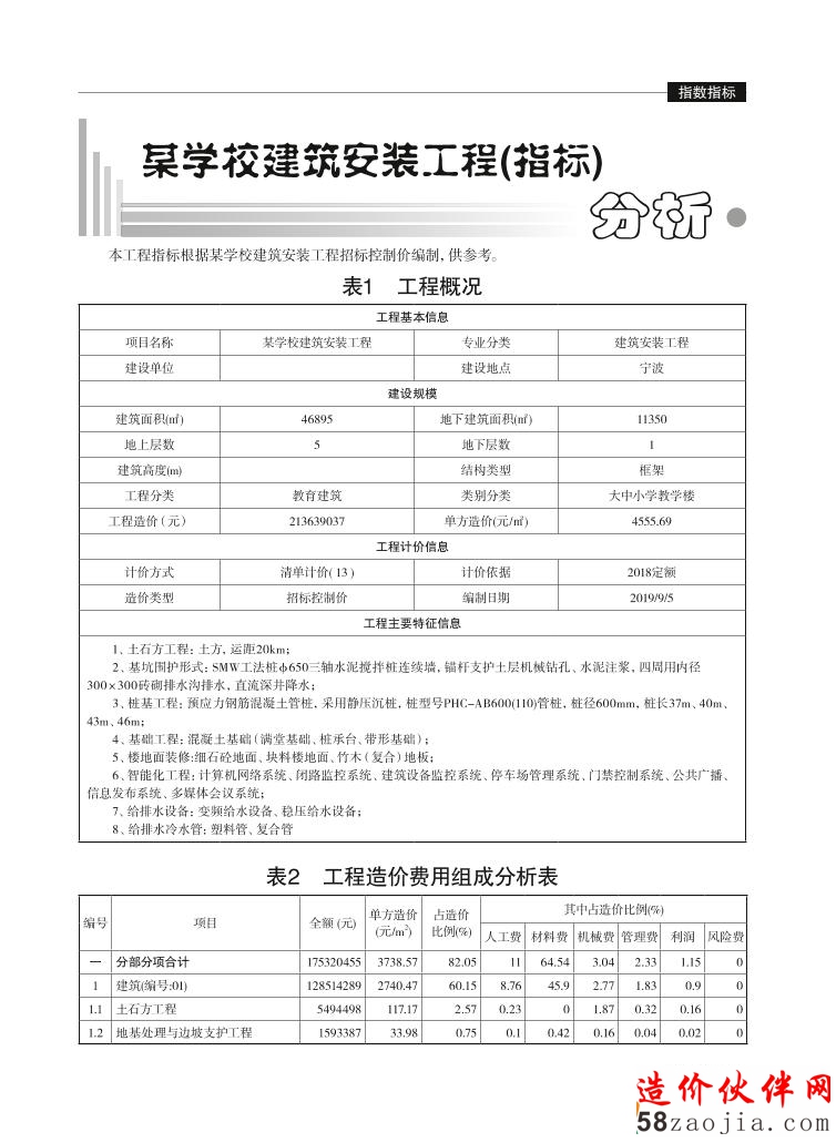 浙江省某学校建筑安装工程(指标)