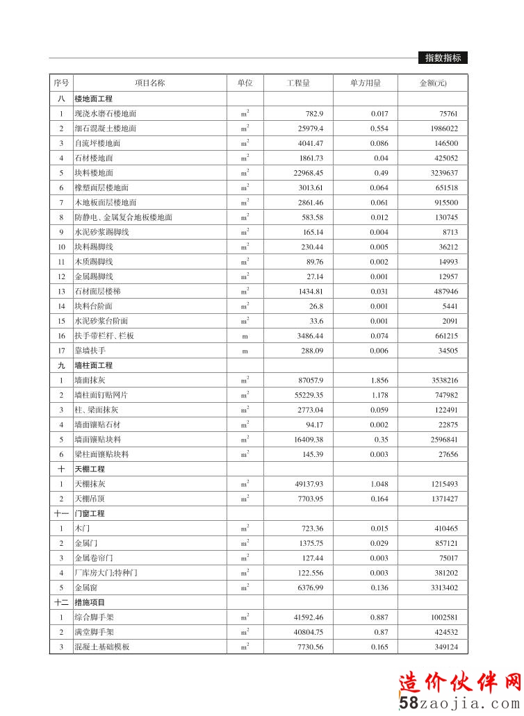 造价指标