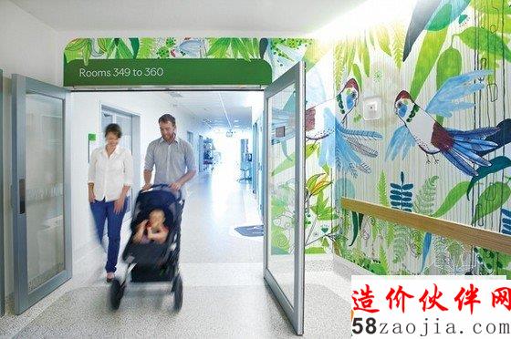 墨尔本皇家儿童医院室内设计采用以家庭为中心的看护。85%的病房都是单床房,为患儿和家属提供了私密性。Dennis说:“房间感觉就像在家一样,并安装了一流的娱乐系统、灯光控制和放置个人物品的地方。此外还为家属设计了储藏区和过夜区。每一层上设置了回避区、聚集区和户外阳台。新医院还配备了一个超市和一个运动观。附近的家庭资源中心为家属准备了私人房间、洗衣区、休息室和厨房、个人看护条件和户外庭院等。HKS儿童医疗设施设计总监Ronald W. Dennis说:“这是一座世界级的医院,提供高质量的照顾和治疗环境,满足患儿、家属和员工的需求。交互式的操场、两层楼的珊瑚礁水族馆、一座科学园、一座剧院(上映最新影片)和一座充满幻想的星光屋。这些都是吸引孩子们的独特场所。”