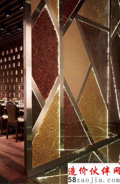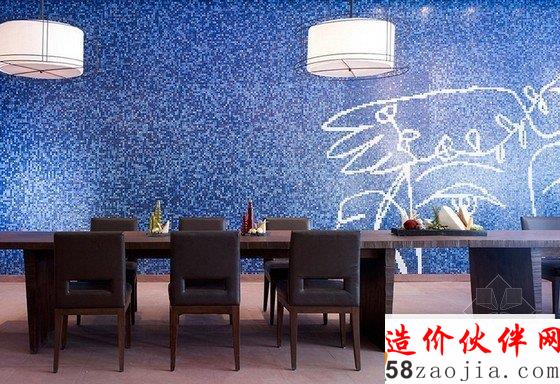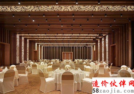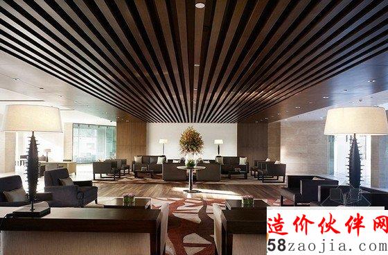 酒店内的装饰风格体现了印度特有的香料、生动的色彩和独特的纹理。酒店的公共空间依次是宏伟的大厅、数间餐厅、一间酒吧和一个按摩室。室内大量使用了木材,例如在家具、屏风、天花板和墙壁等地方都有使用,形成多样的图案和质感。大理石瓷砖和石砌墙壁的加入更增强了异域风情。休闲茶吧是大厅与后方餐厅之间的过渡区。暖色调和皮质沙发的使用营造出亲密轻松的气氛。多功能厅里一条条木梁形成独特的框架结构,其间还有华丽的特色图案装饰。毕加索风格的亮蓝色马赛克瓷砖为整个酒店增添了现代气息。