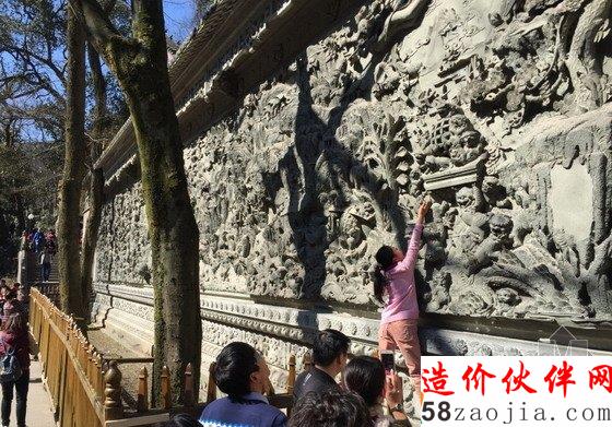 2016年02月13日,浙江省杭州市,大批游客前往全国著名古寺灵隐寺祈福,纷纷向一面雕刻有图案的墙体上投掷硬币,墙壁成“硬币墙”。